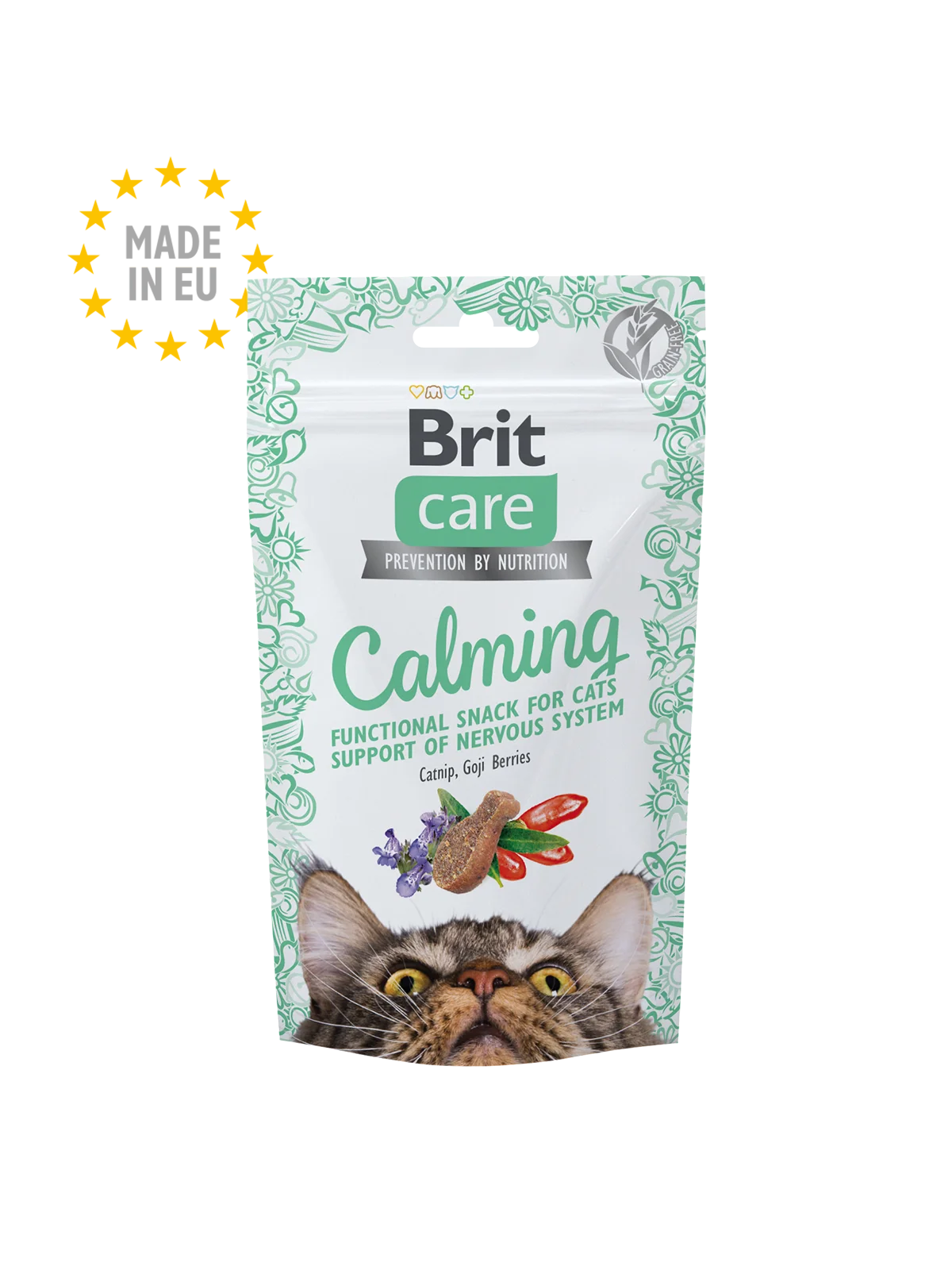 A semi-moist functional treat enriched with catnip and goji berries to support your cat’s nervous system. A wholesome complementary snack for cats.